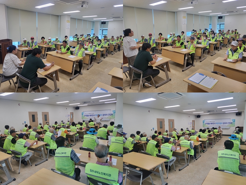 청주내덕노인복지관에서는 9월 25일 오후 13시 30분부터 14시 30분까지 복지관 2층 배움방에서 해피천사 하천지킴이 참여자 간담회를 진행하였습니다. 오전에 활동을 진행하고 오후에는 참여자 간담회에 참여하며 적극적인 활동을 해주셨습니다. 활동을 진행하면서 애로사항이나 건의사항 등을 들어보며 그동안 놓치고 있던 부분들을 알아가는 뜻깊은 시간이 되었습니다. 이번 간담회에서 나온 의견들을 참고하여 앞으로 남은 활동들과 차년도 사업 운영 계획 시 보다 발전할 수 있도록 노력하는 청주내덕노인복지관이 되겠습니다!