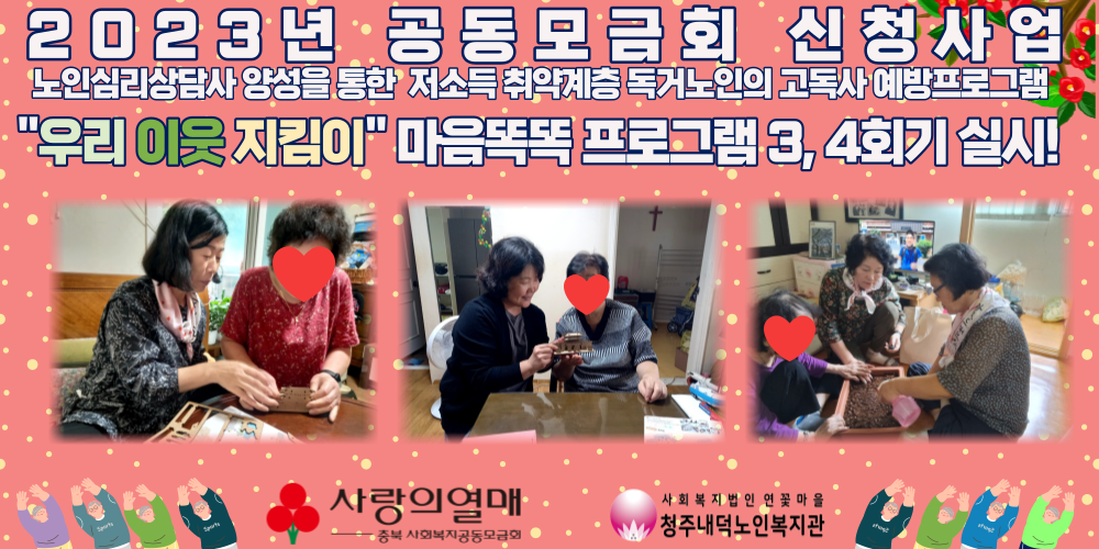 노인심리상담사 양성을 통한 저소득 취약계층 독거노인의 고독사 예방프로그램 "우리이웃지킴이"의 3, 4회차 마음똑똑 프로그램이 진행되었습니다!!