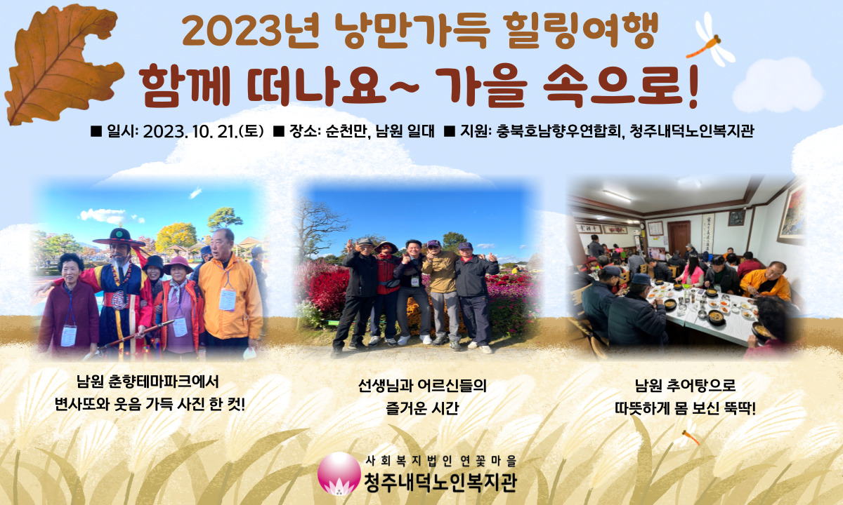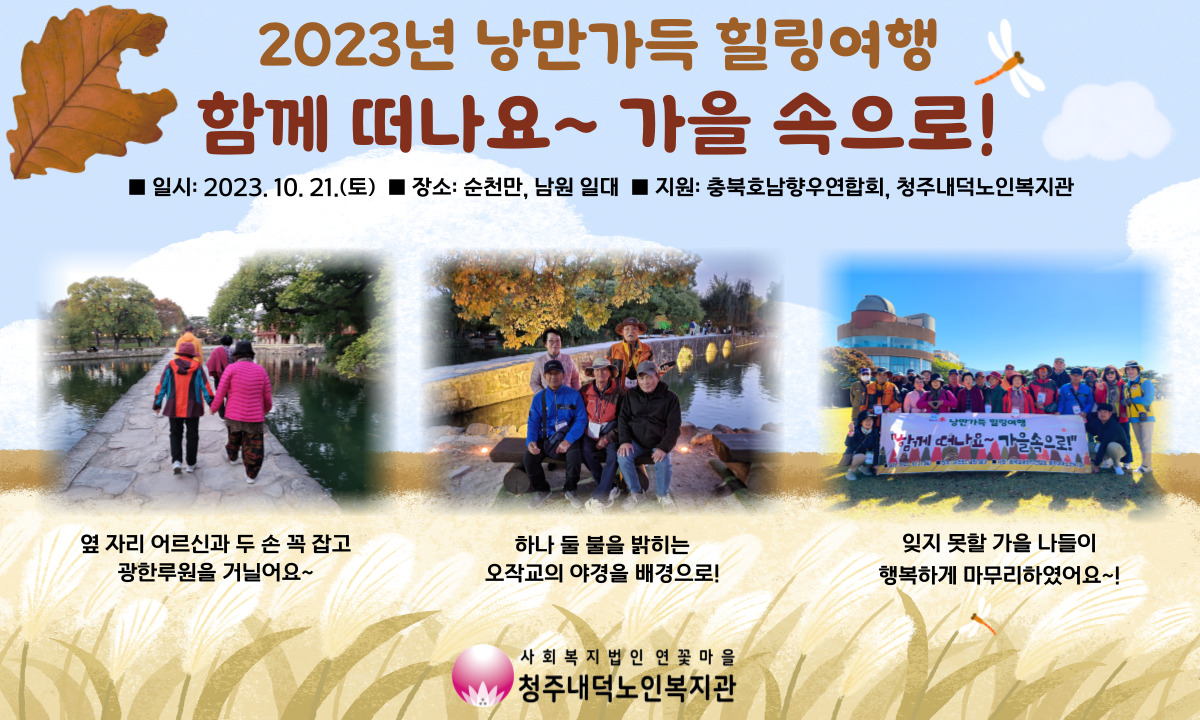| 2023년 낭만가득 힐링여행 "함께 떠나요~ 가을 속으로!" | |||