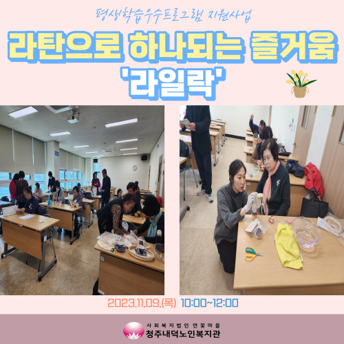 청주내덕노인복지관에서는 평생학습우수프로그램지원사업인 라탄으로 하나되는 즐거움 '라일락'이 10월부터 막바지를 향해 달리다 11월9일(목) 마지막 회기를 진행하였습니다.