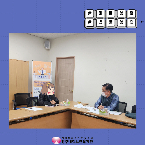 청주내덕노인복지관에서는 12월12일(화) 13시부터 15시까지 2023년 하반기 무료법률상담이 진행되었습니다.