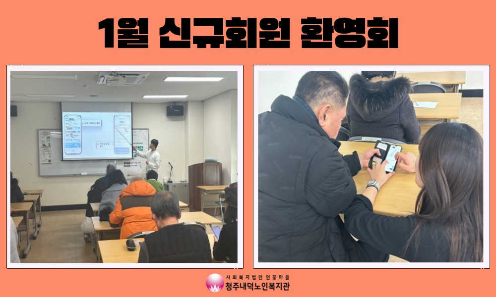 1월 진행된 신규회원환영회에서는 청주내덕노인복지관에서 진행되는 다양한 사업에 대한 운영 및 이용방법과 현재 진행 예정인 주요 일정에 대해 안내하며 질의응답을 통해 신규회원들의 궁금증을 해소할 수 있는 시간을 가질 수 있었습니다