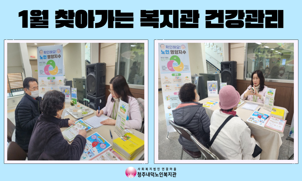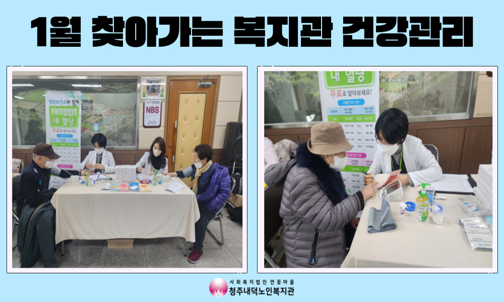 1월 진행한 청주내덕노인복지관 찾아가는 복지관 건강관리는 혈압 및 혈당 검사와 영양상담이 진행되었습니다.