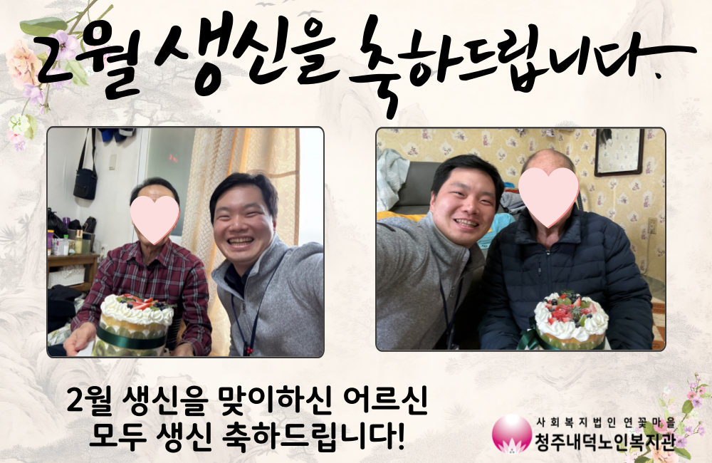 생신을 축하드리며, 청주내덕노인복지관은 앞으로도 어르신의 건강과 우울감 예방을 위한 정서지원 활동을 위에 노력하겠습니다.