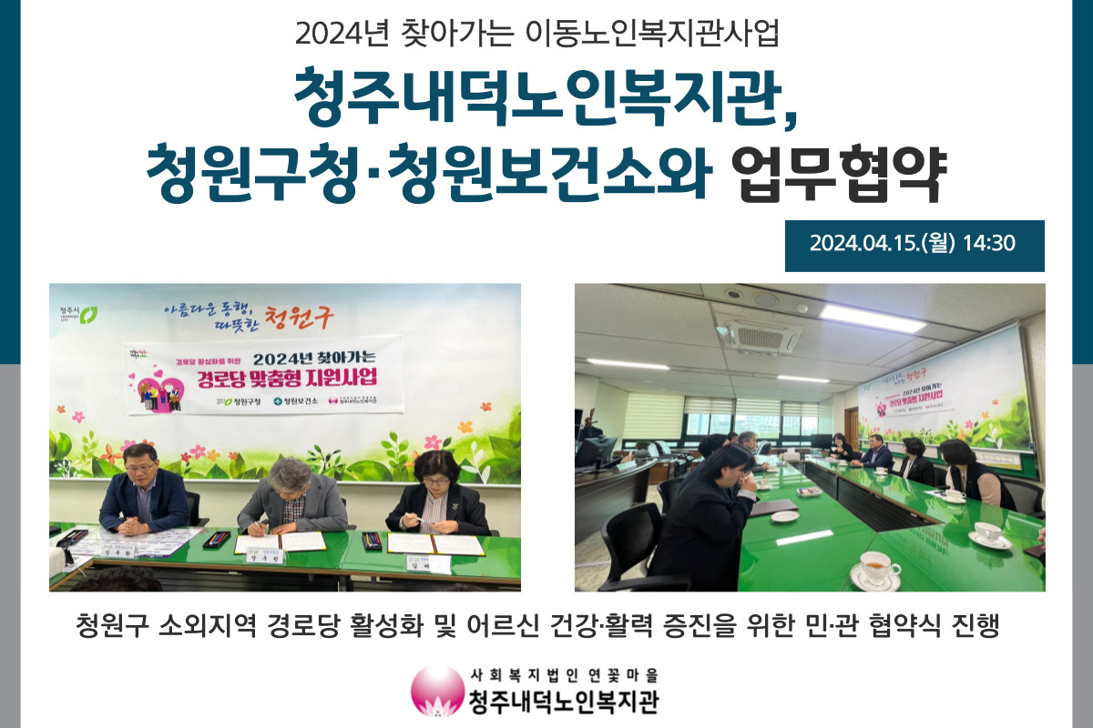 | 청주내덕노인복지관, 청원구청·청원보건소와 업무협약 체결 | |||