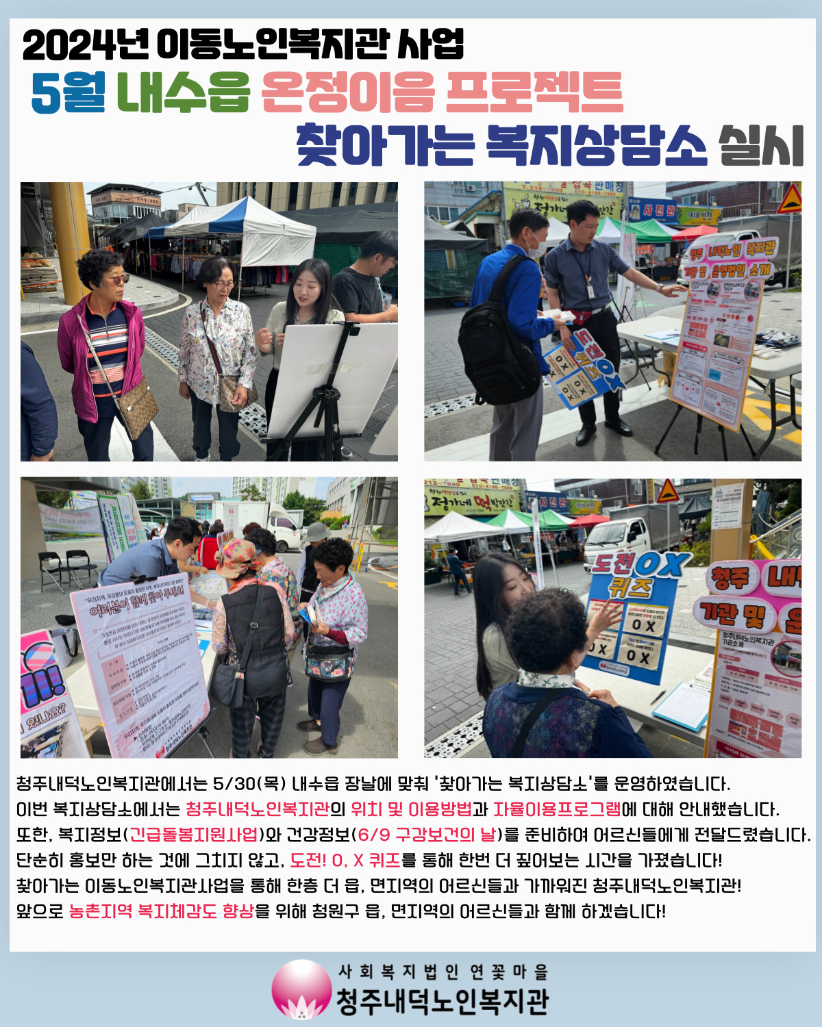 | 2024년 이동노인복지관 5월 내수읍 온정이음 프로젝트 복지상담소 실시 | |||