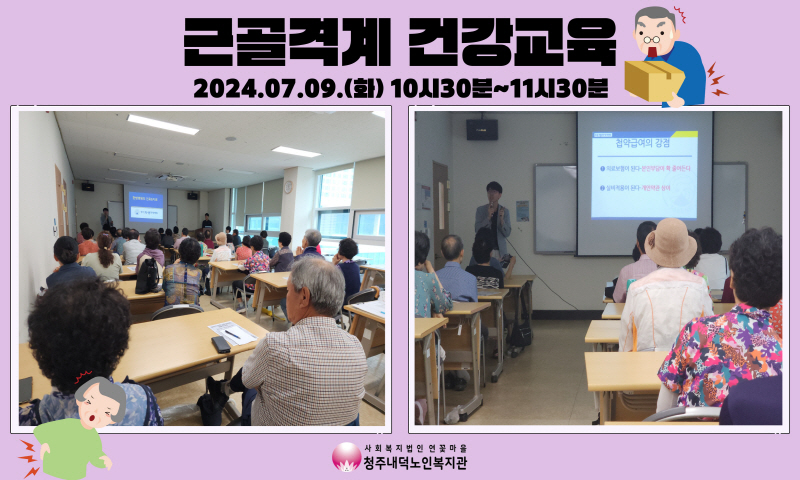 2024년 7월9일(화) 10시30분~11시30분 청주내덕노인복지관 2층 배움방에서 청주자생한방병원과 함께 근골격계 건강교육을 진행하였습니다.