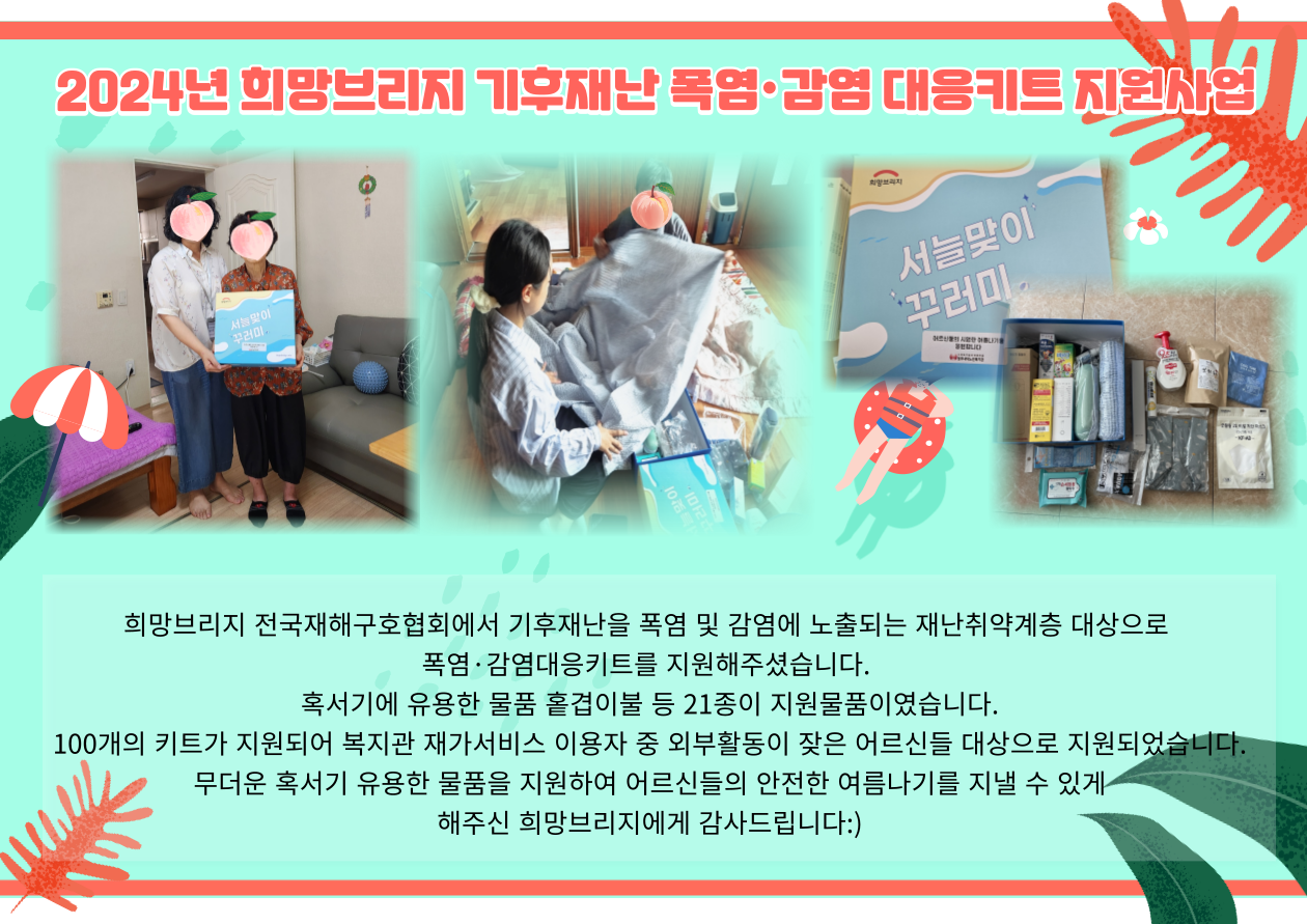 | 2024년 희망브리지 기후재난 폭염·감염 대응키트 지원사업 | |||