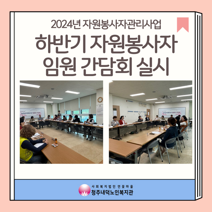 2024년 10월 7일(월) 11시~12시까지 "2024년 자원봉사자관리사업 하반기 자원봉사자 임원 간담회" 를 성공적으로 진행되었습니다.