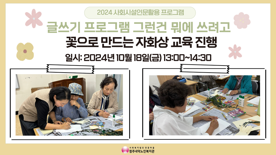 | 2024 사회시설활용 인문프로그램 글쓰기프로그램 꽃으로 만든 자화상 교육 진행 | |||