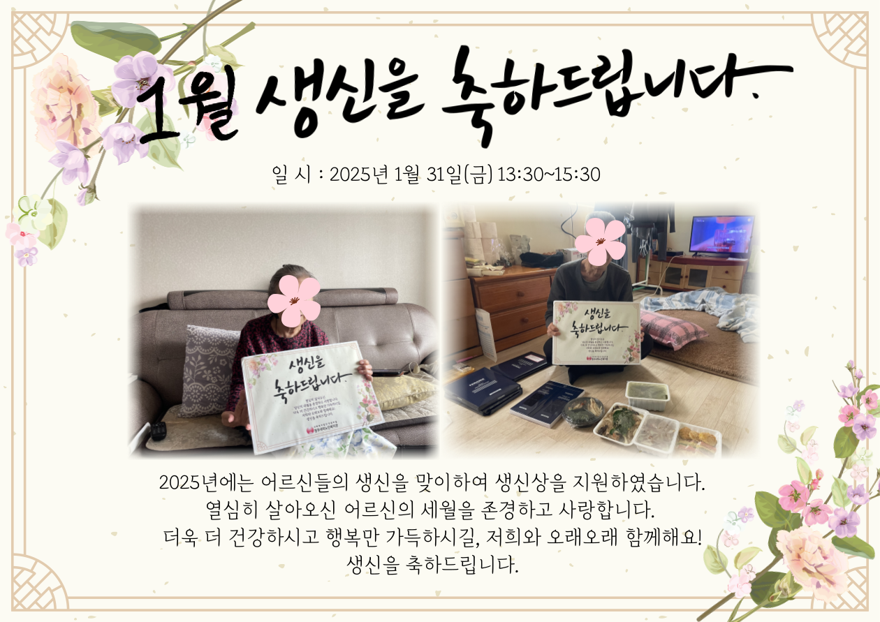 해가 바뀐 후, 2025년 1월 생신지원을 위하여 어르신 댁에 방문하였습니다.