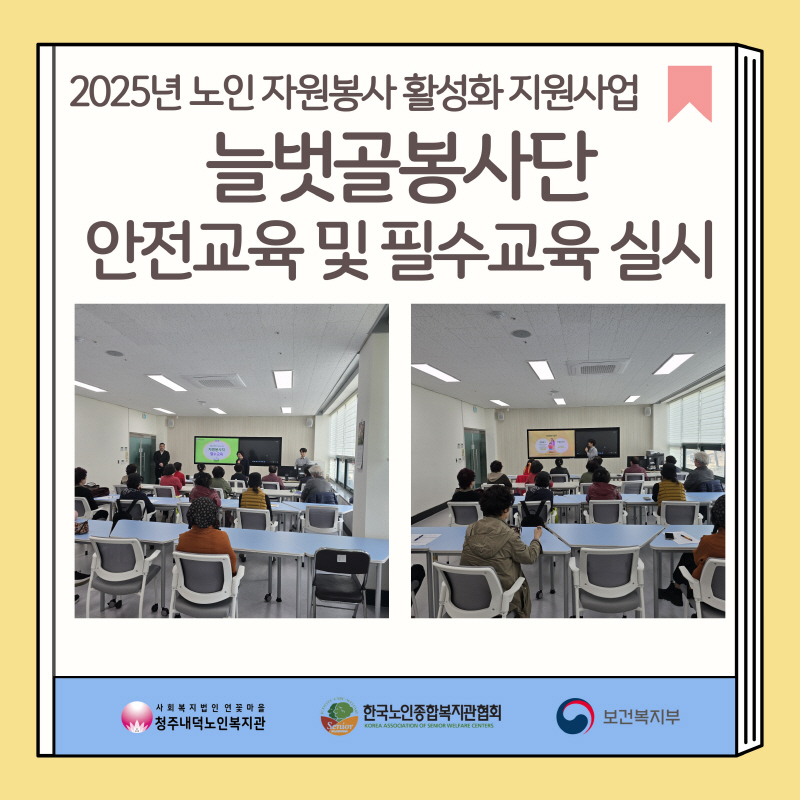 | 2025년 노인 자원봉사 활성화 지원사업 늘벗골봉사단 자원봉사자 안전교육 및 필수교육 실시 | |||