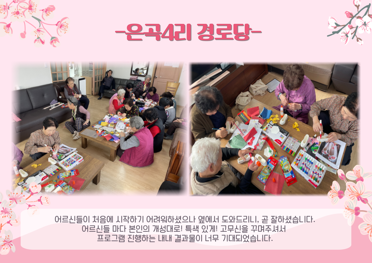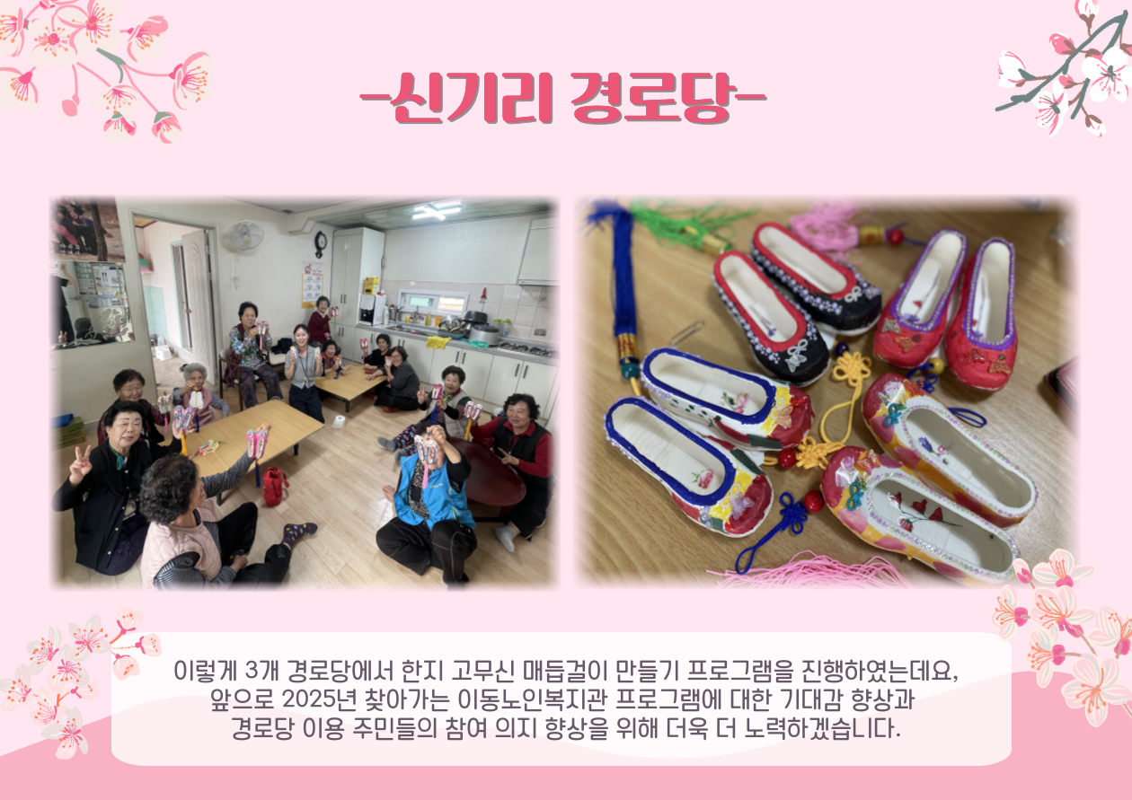 찾아가는 이동노인복지관사업 2025년 처음 실시하는 경로당 프로그램 이였습니다. 앞으로도 더 흥미로운 프로그램을 어르신들이 경험하실 수 있도록 노력하겠습니다~!