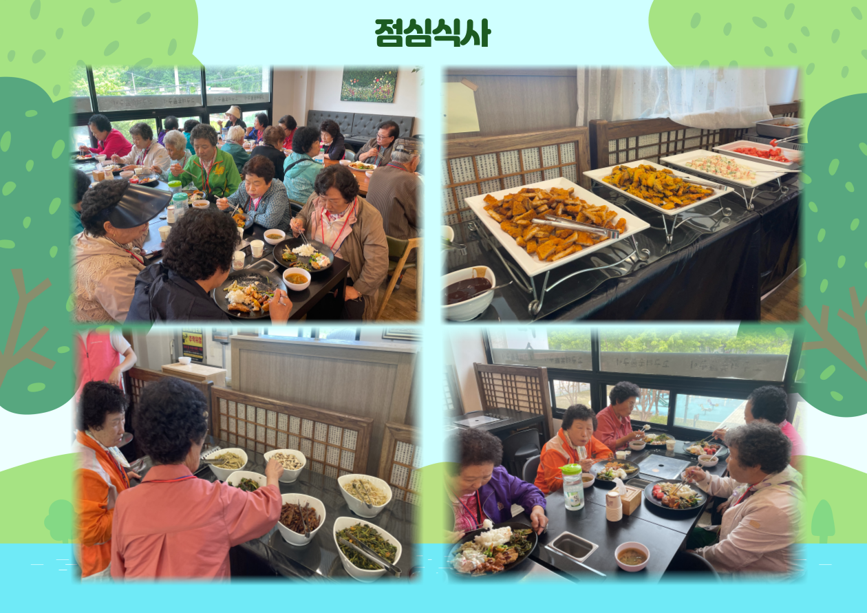 점심에는 단양으로 이동하여 한식뷔페에서 맛있게 식사하셨습니다.