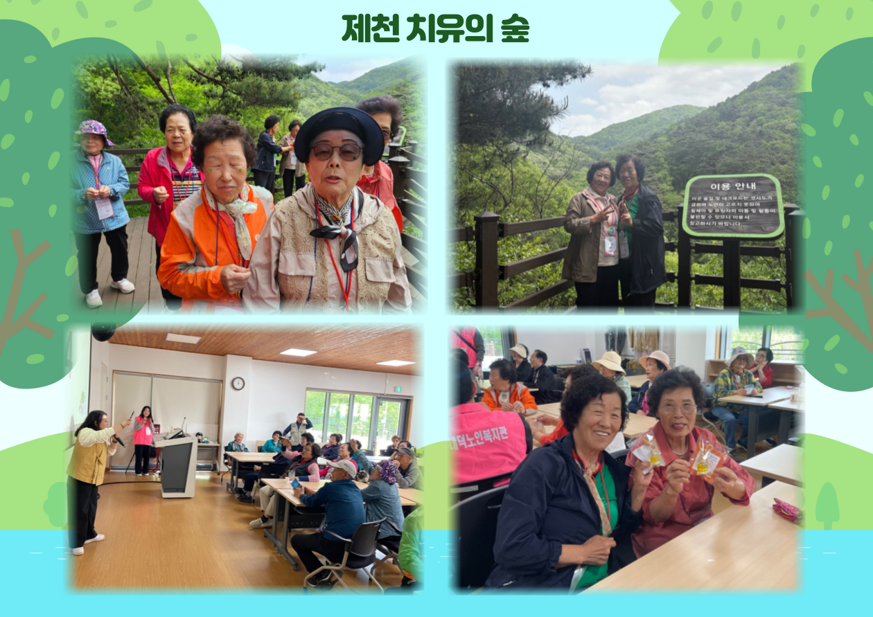 2025년 찾아가는 이동노인복지관 사업의 일환으로 5월 19일 월요일 북이면 신기리 경로당 16명과 내수읍 은곡4리 경로당 19명 총 35명의 어르신들과 함께 제천으로 나들이를 다녀왔습니다.