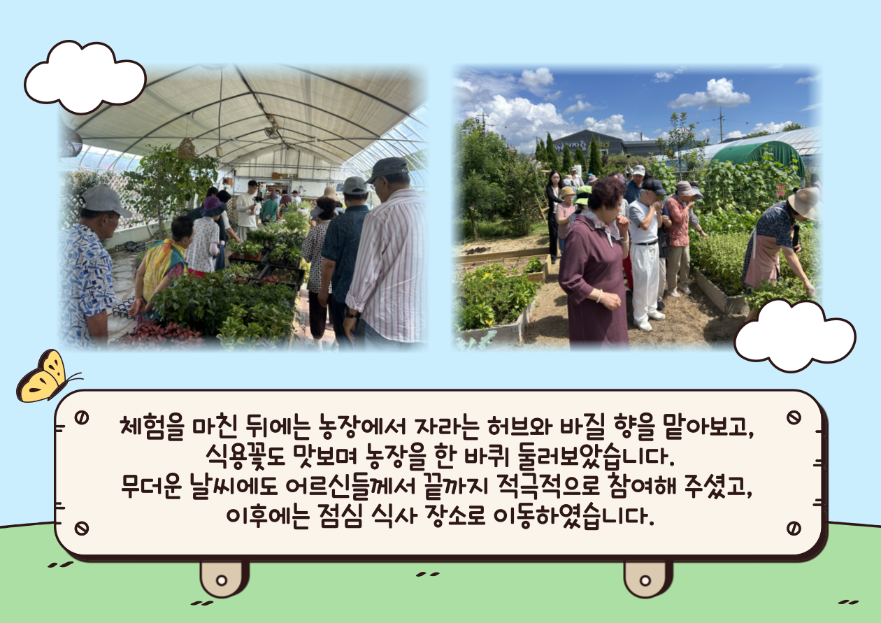 앞으로도 어르신들께서 일상에서 잠시 벗어나 기분을 전환하실 수 있는 다양한 프로그램을 기획할 수 있도록 최선을 다하겠습니다.
