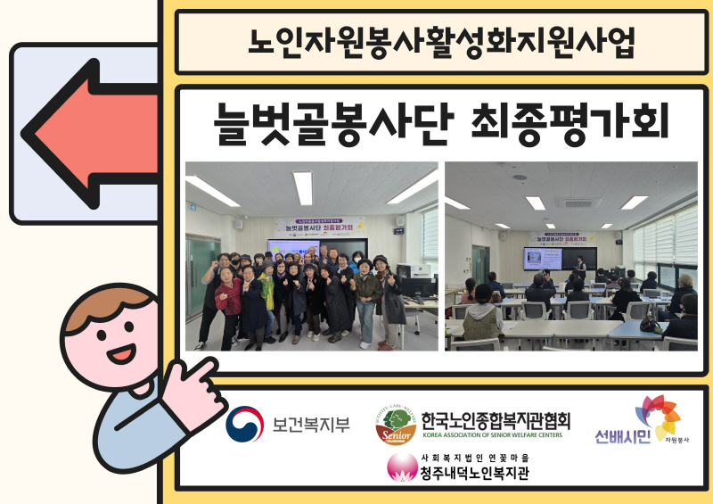 노인자원봉사활성화지원사업 늘벗골봉사단 최종평가회가 2025년 10월 29일(수) 1층 교육마당에서 최종평가회가 진행되었습니다.