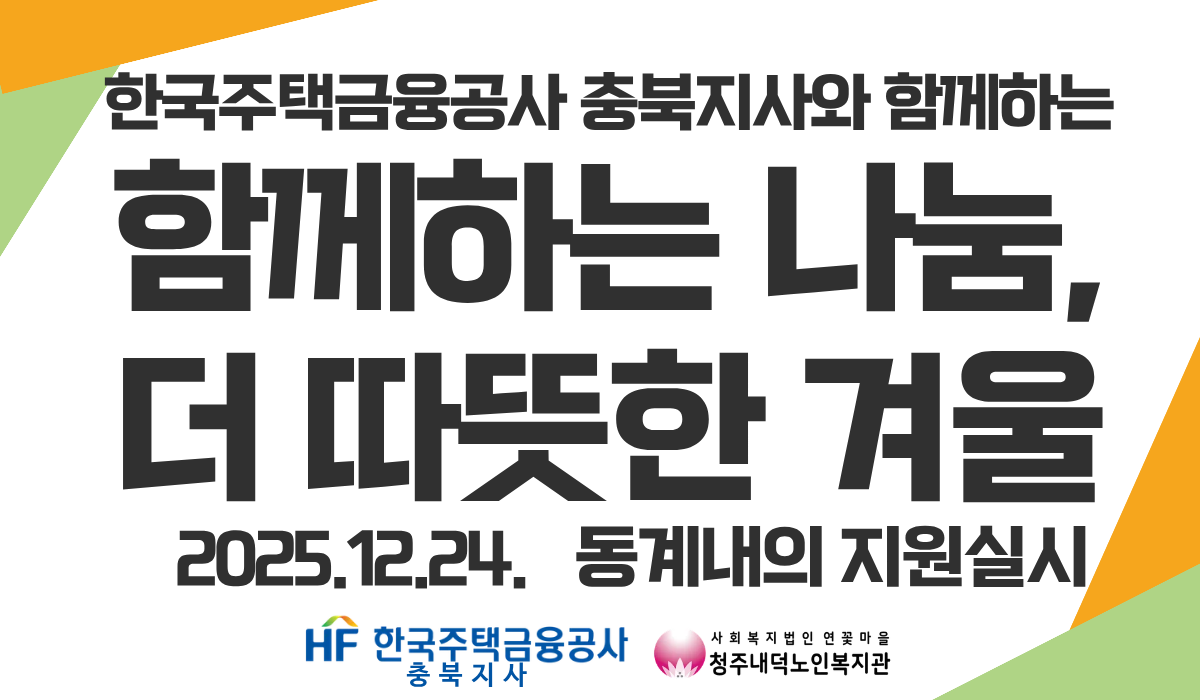 이번 지원이 원활하게 진행될 수 있도록 따뜻한 나눔을 실천해주신 한국주택금융공사 충북지사에 깊이 감사드리며, 청주내덕노인복지관은 앞으로도 지역 어르신의 건강하고 안전한 겨울나기를 위해 지속적으로 지원하겠습니다!!