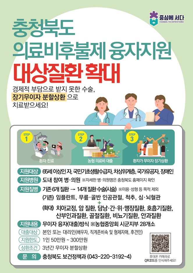 [3월 건강정보] 충청북도 의료비후불제 융자지원 대상질환 확대