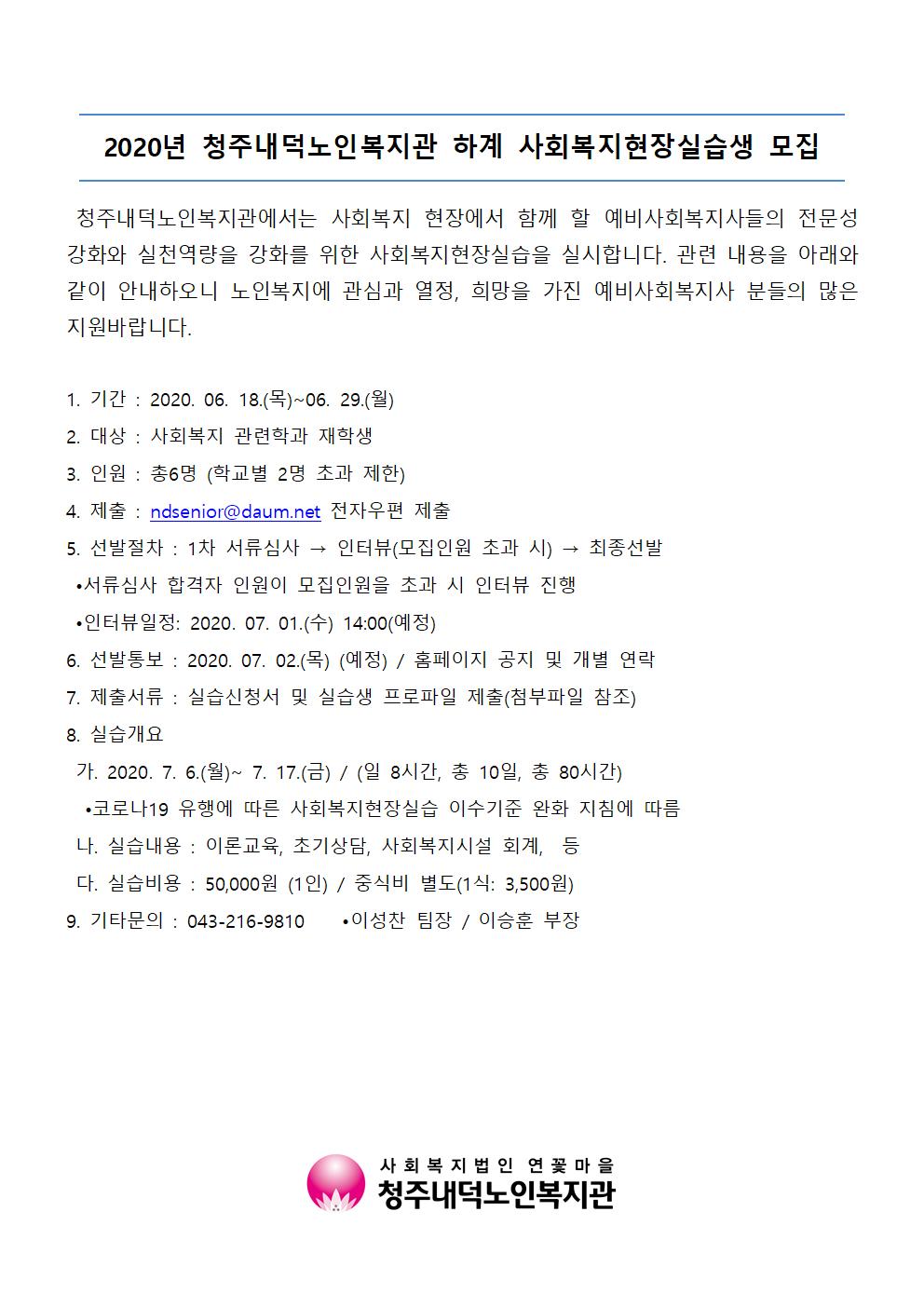 | 2020년 하계 사회복지현장실습생 모집 공고 | |||