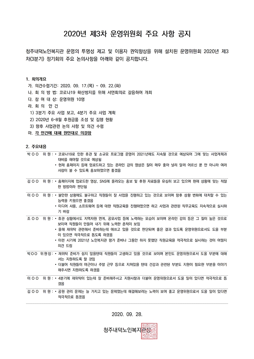 | 2020년 제3차(3분기) 운영위원회 정기회의 결과 공지 | |||