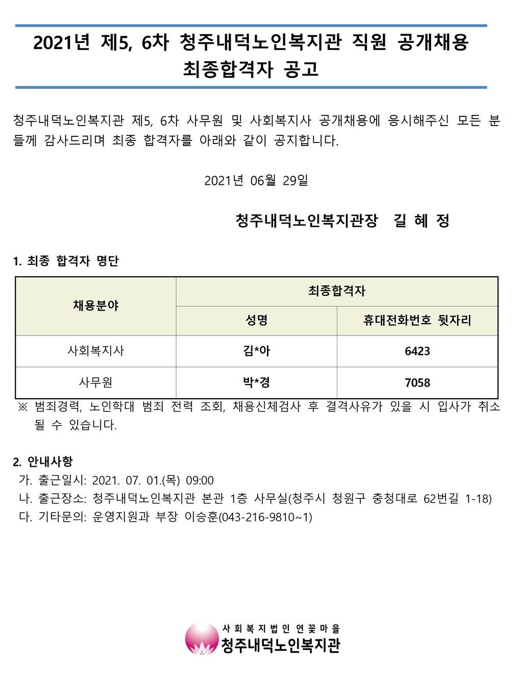 | 2021년 제5, 6차 직원 공개채용 최종 합격자 공고 | |||