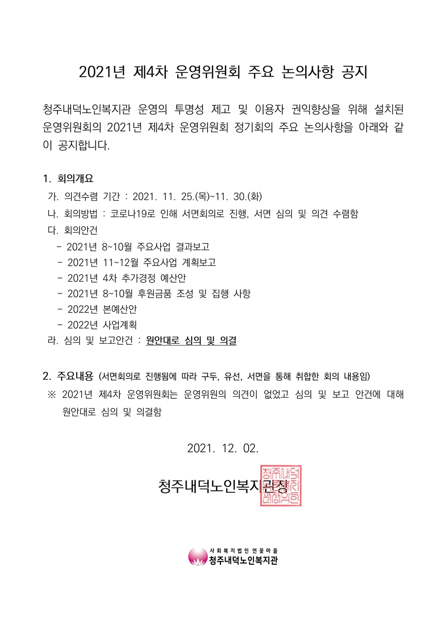 | 2021년 제4차 운영위원회 결과 공고 | |||