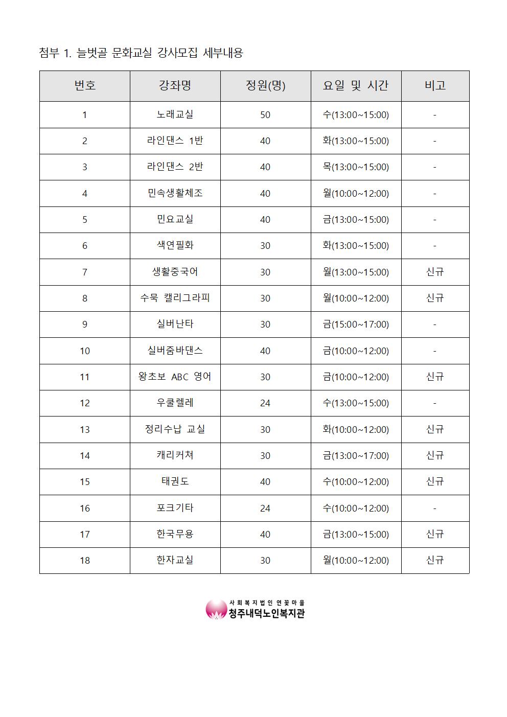 | 2022년 늘벗골 문화교실 강사 채용 모집 공고 | |||