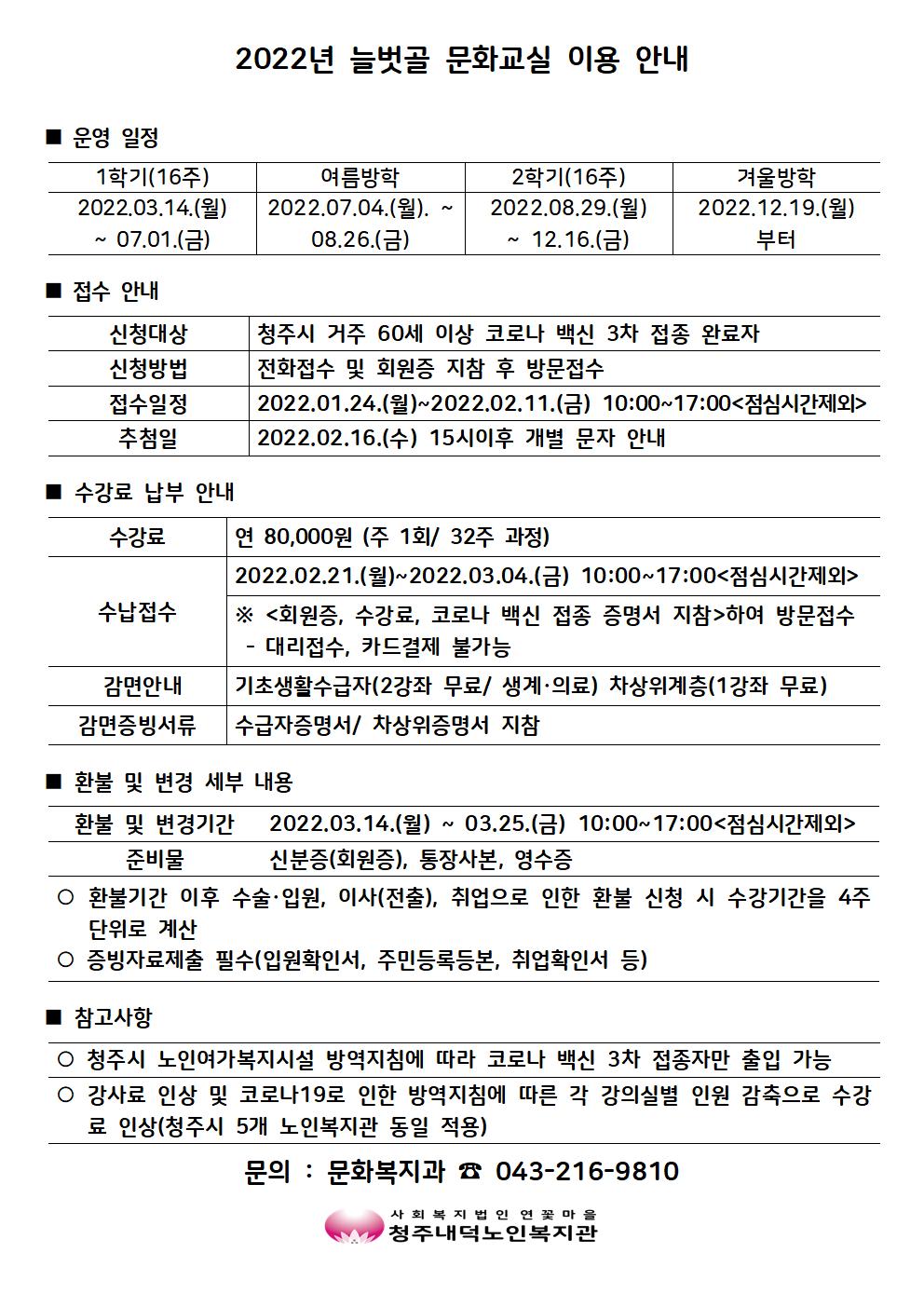 2022년 늘벗골 문화교실 참여자 모집 공고