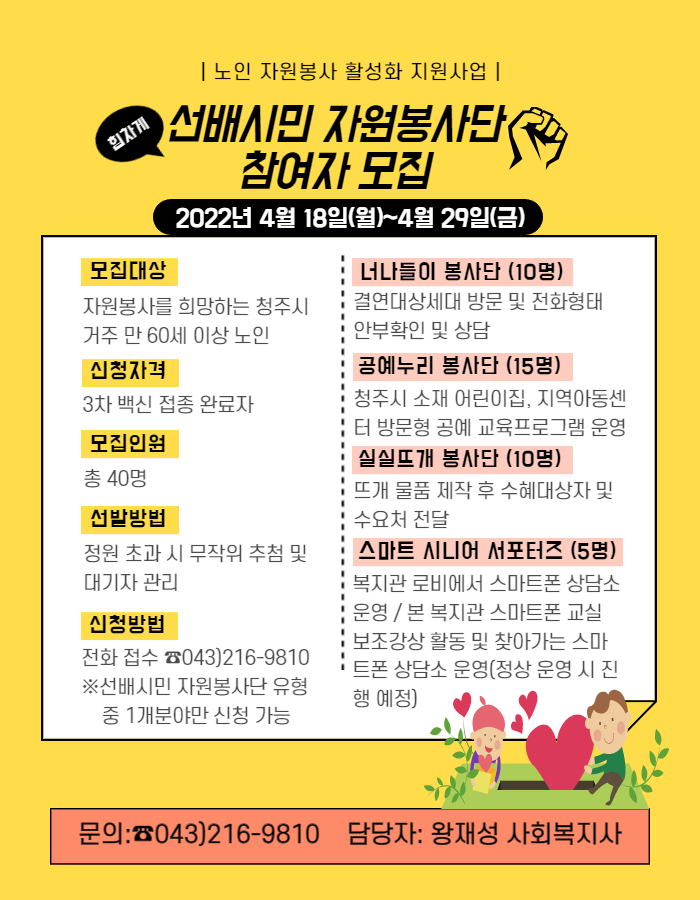 | 2022년 선배시민 자원봉사단 참여자 모집 | |||