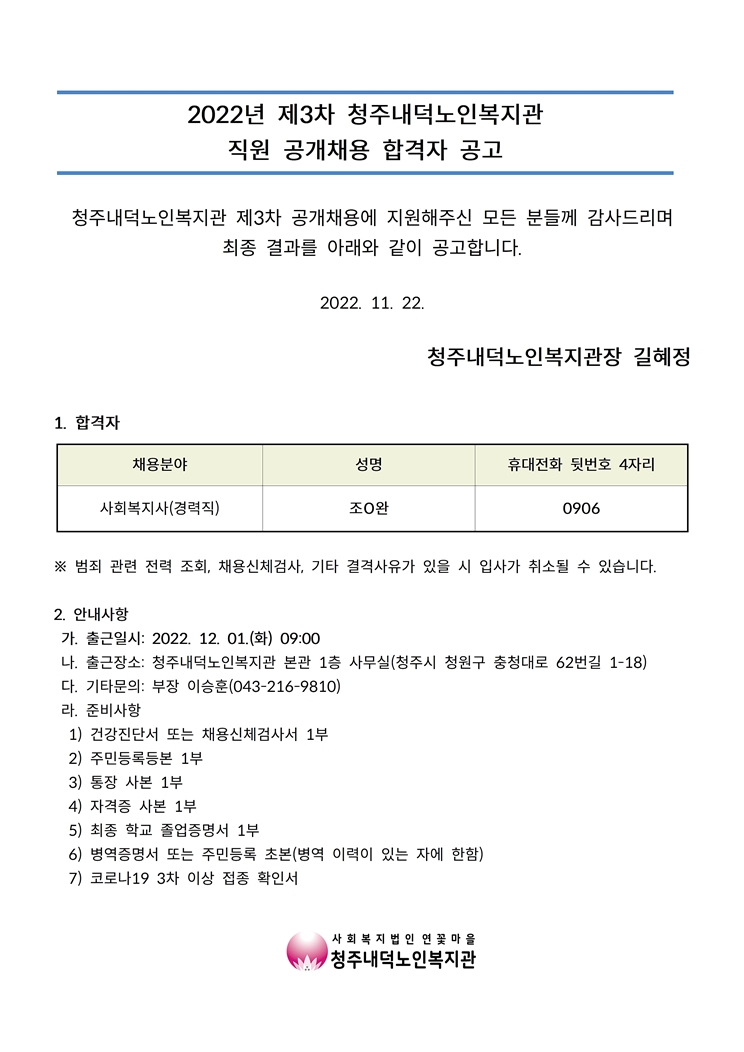 | 2022년 제3차 공개채용 합격자 공고 | |||