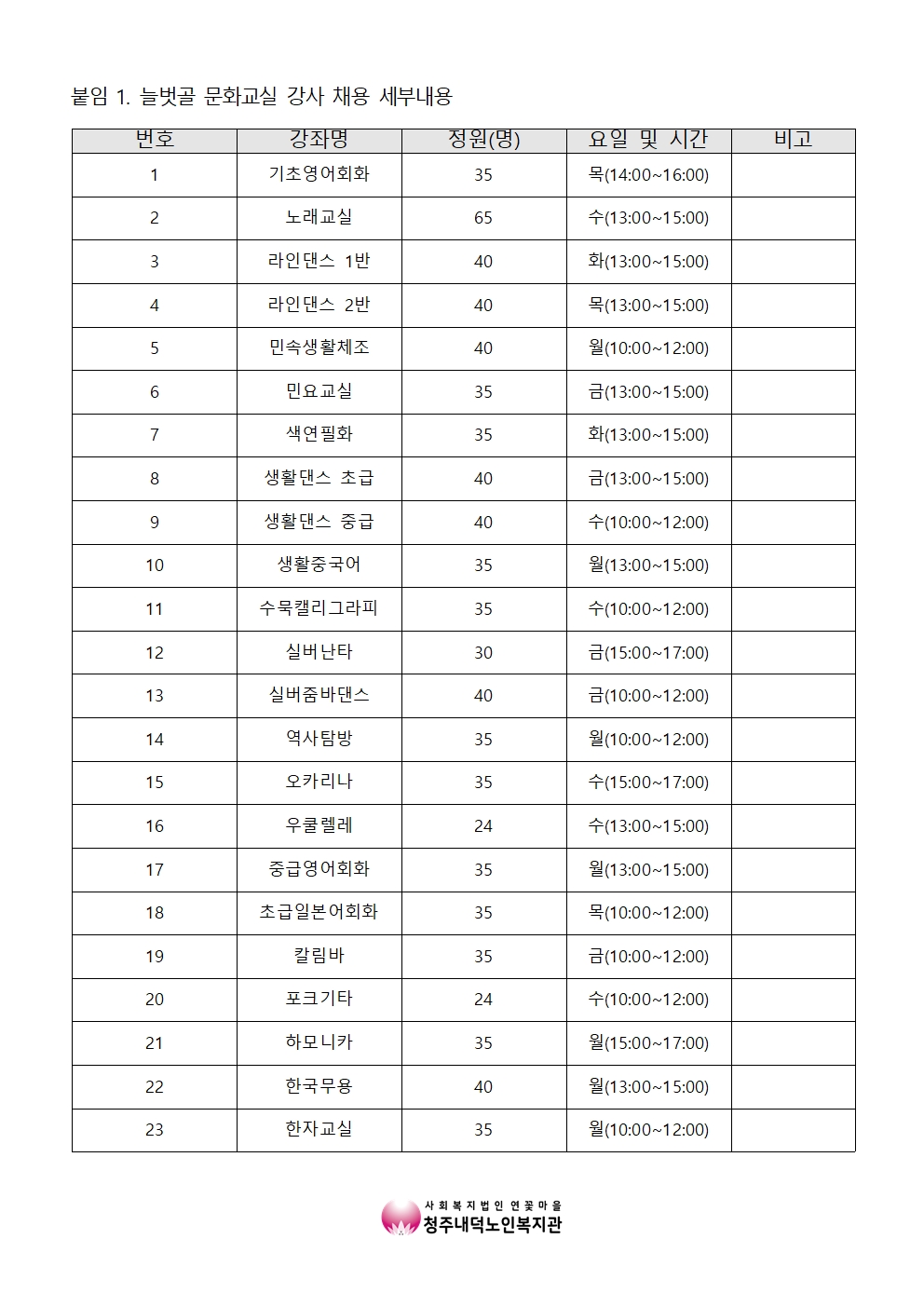 | [모집] 2023년 늘벗골 문화교실 강사 채용 공고(12.02. 수정) | |||