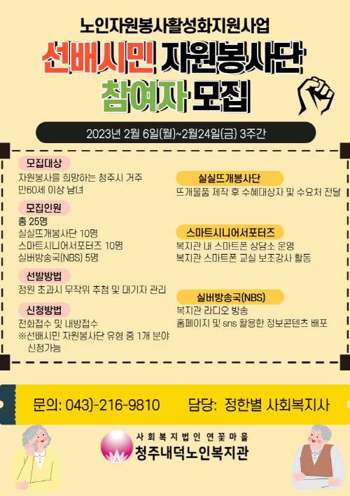 | 2023년 선배시민 자원봉사단 참여자 모집 | |||