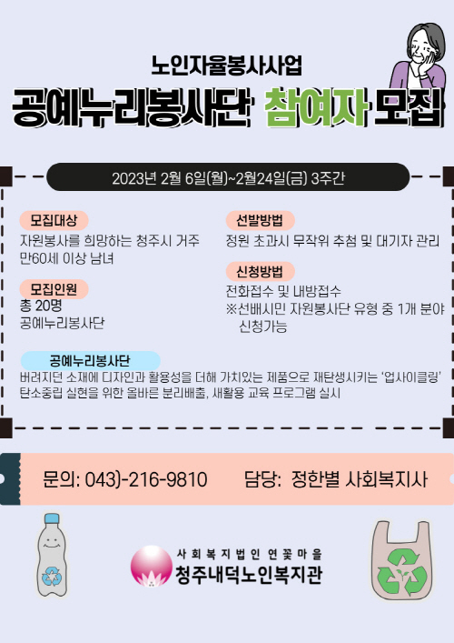 | 2023년 노인자율봉사 봉사단 참여자 모집 | |||