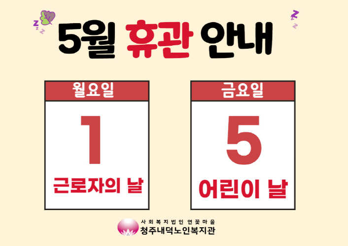 | [휴관안내] 청주내덕노인복지관 5월 휴관안내 | |||