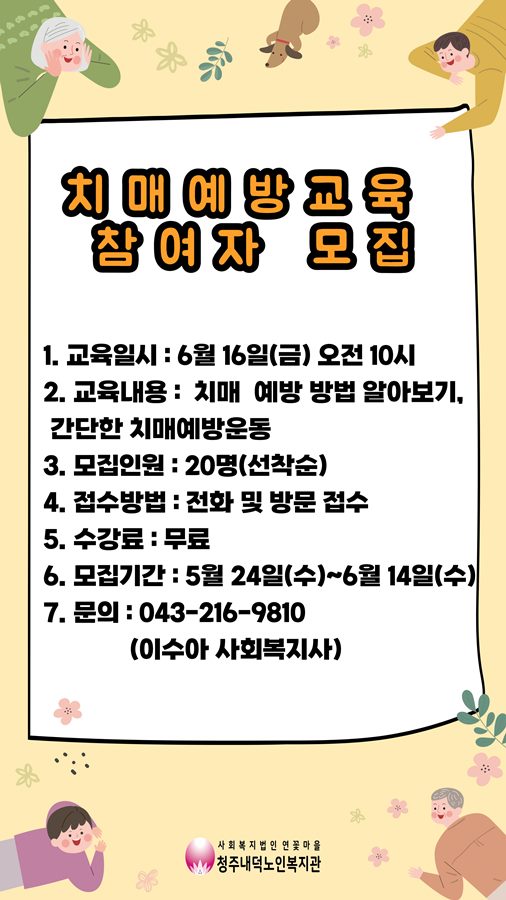 | [모집] 치매예방교육 참여자 모집 | |||