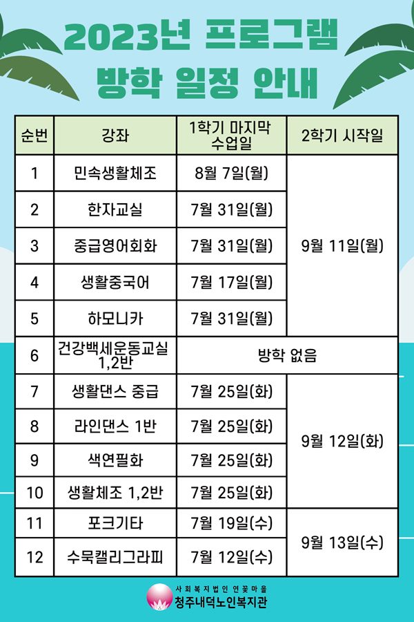 | [공지]2023년 프로그램 방학 일정 안내 | |||