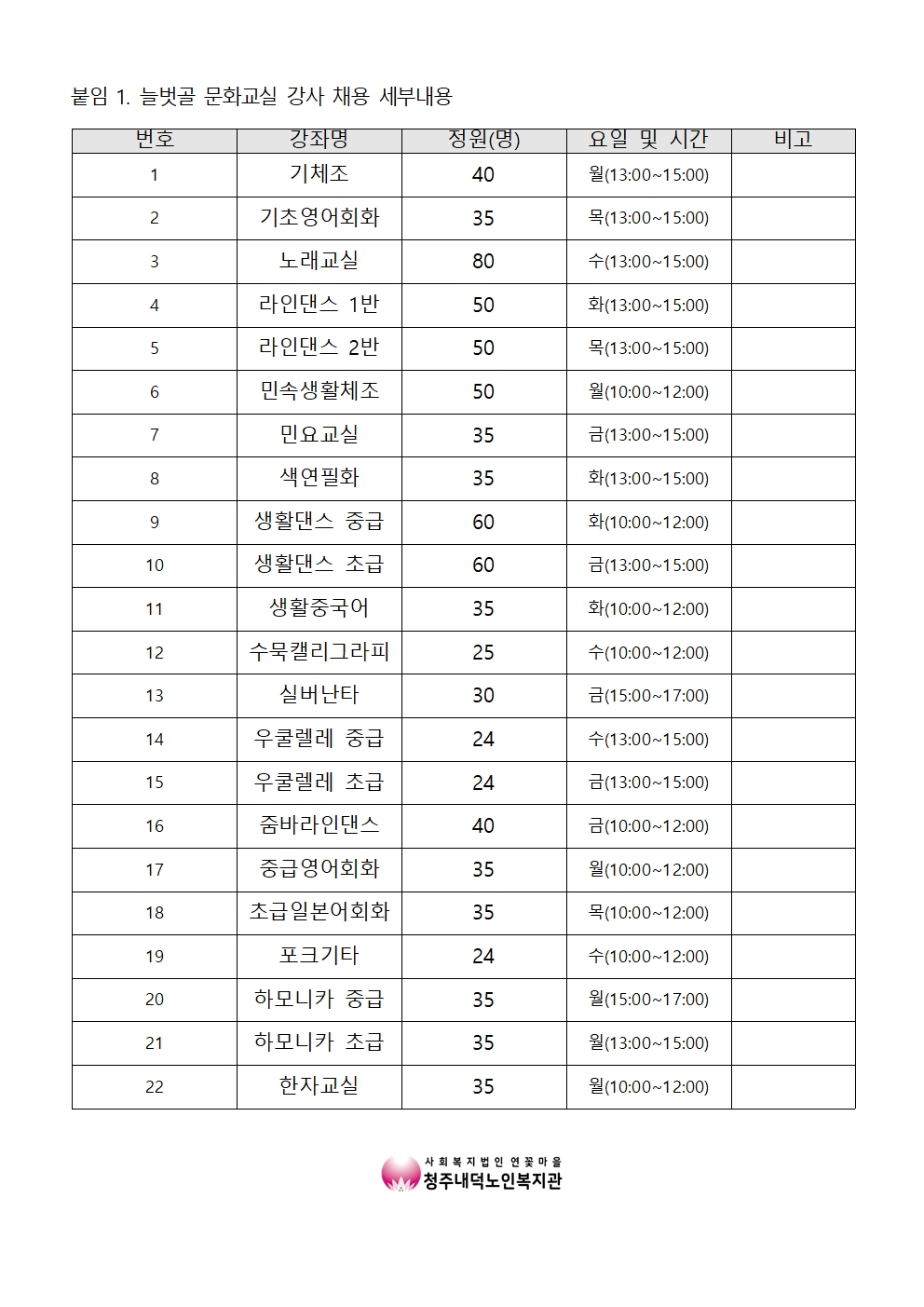 | 2024년 늘벗골 문화교실 강사 채용 모집 공고 | |||