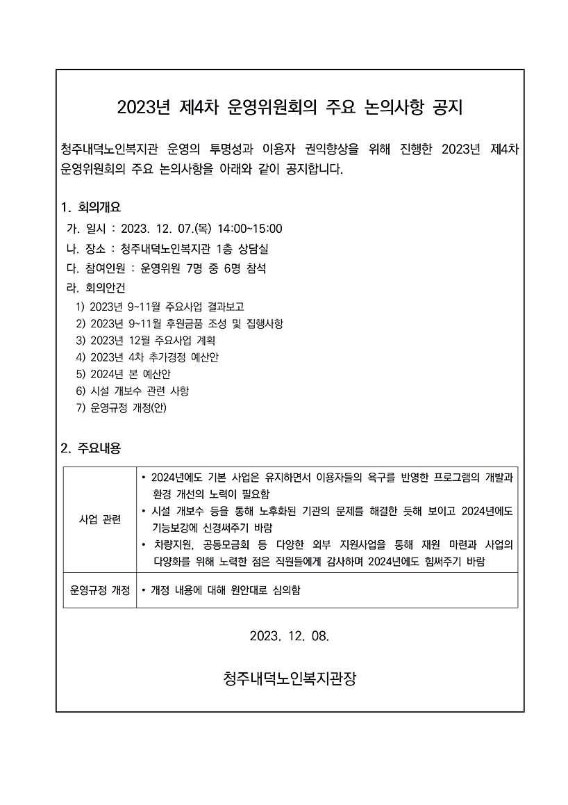 | 2023년 제4차 운영위원회 결과 공고 | |||