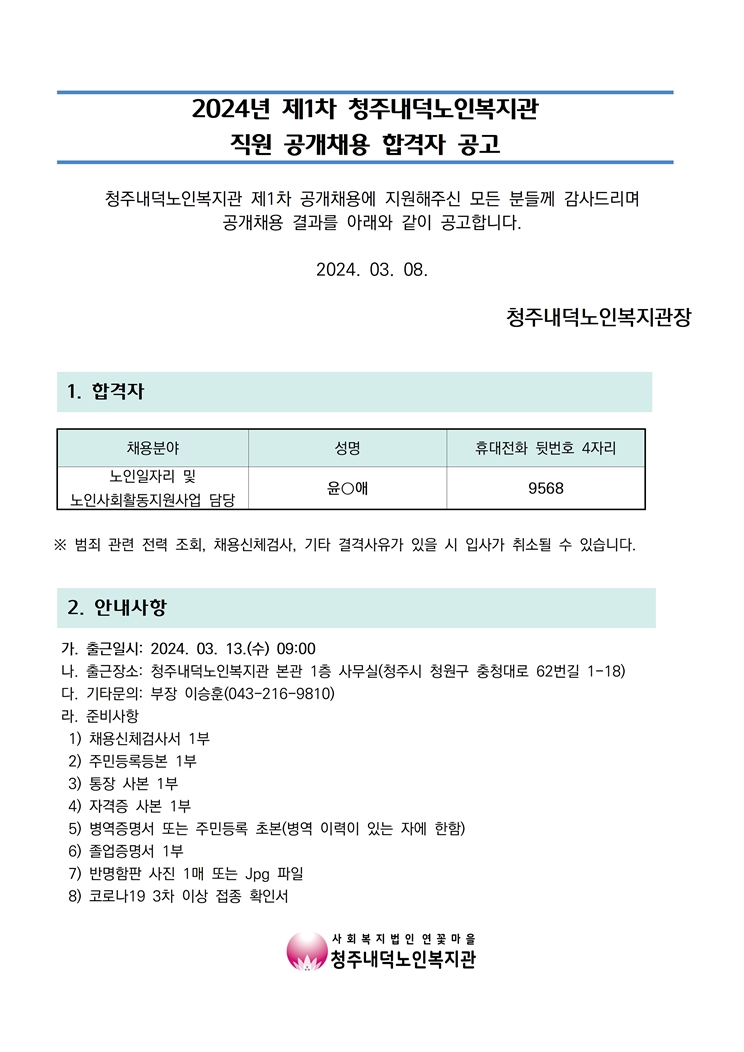 | 2024년 제1차 공개채용 합격자 공고 | |||
