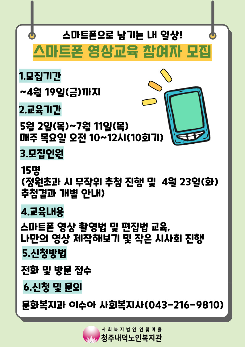 | [모집] 스마트폰 영상교육 참여자 모집 | |||