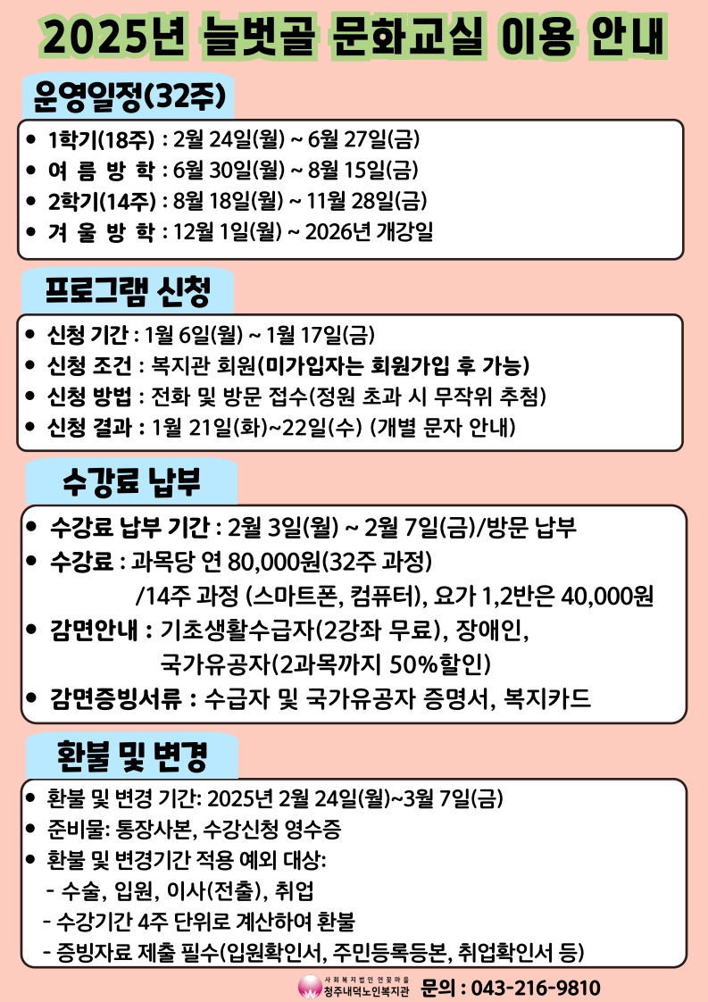 | [모집]2025년 늘벗골 문화교실 수강생 모집(01.03. 시간표 수정) | |||