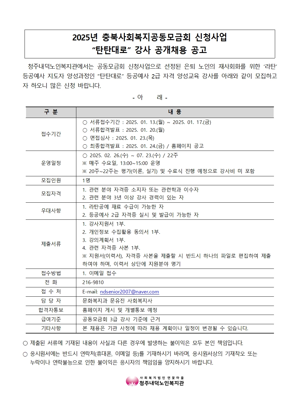 | 2025년 충북사회복지공동모금회 신청사업 - 탄탄대로 강사모집 | |||