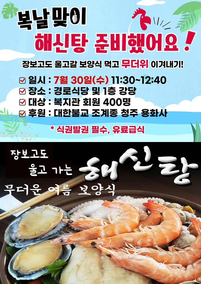 | [경로식당 특식] 복날맞이 해신탕 DAY 안내 | |||