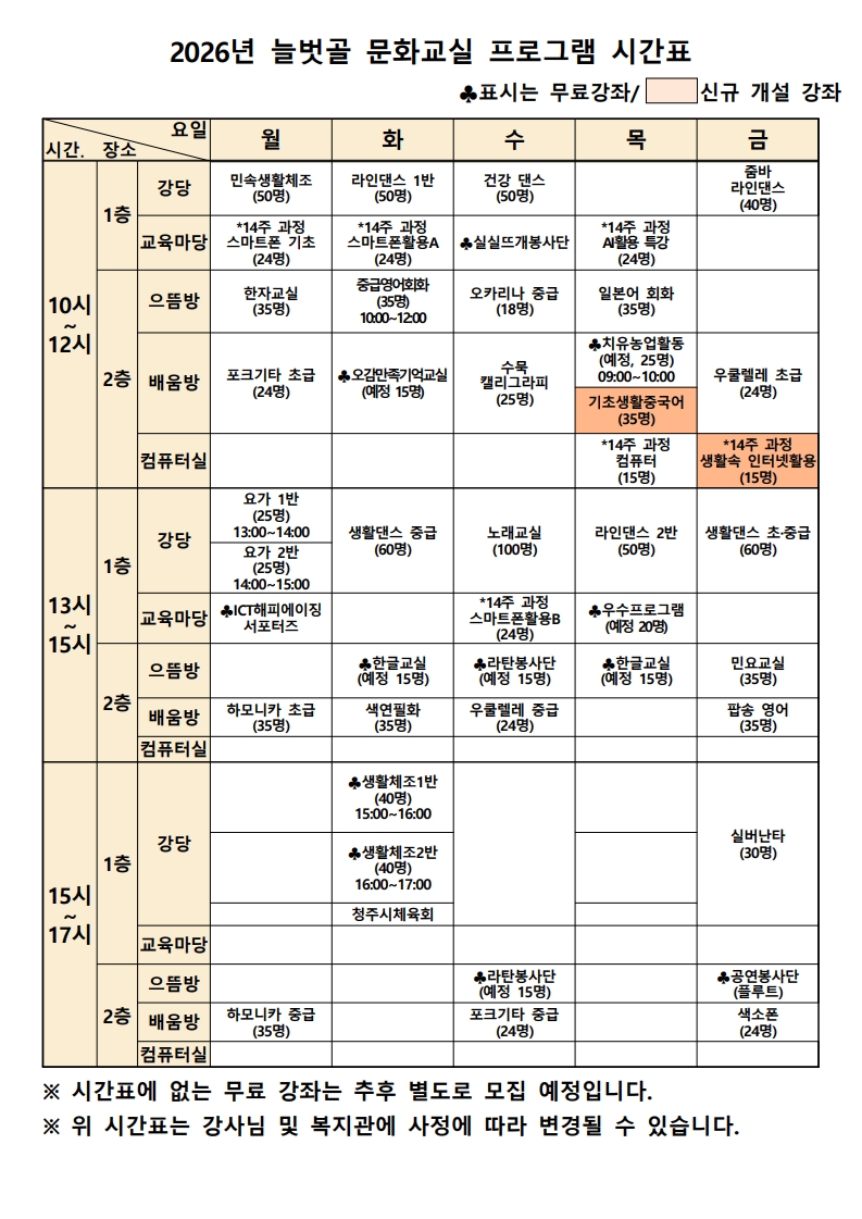 | [공지] 2026년 늘벗골 문화교실 수강생 모집 안내 | |||