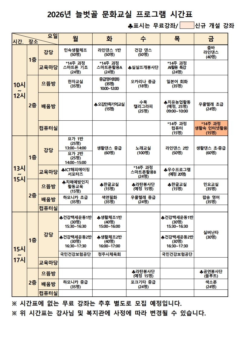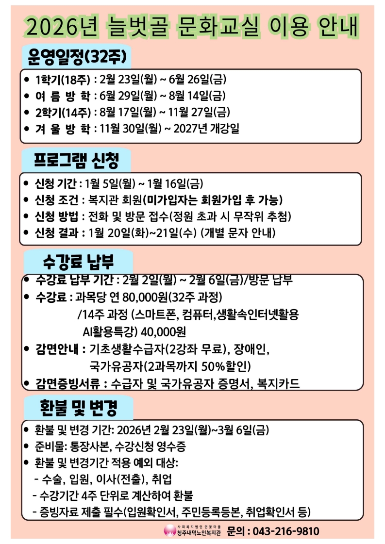 [공지] 2026년 늘벗골 문화교실 수강생 모집 안내