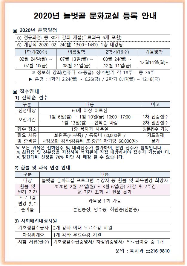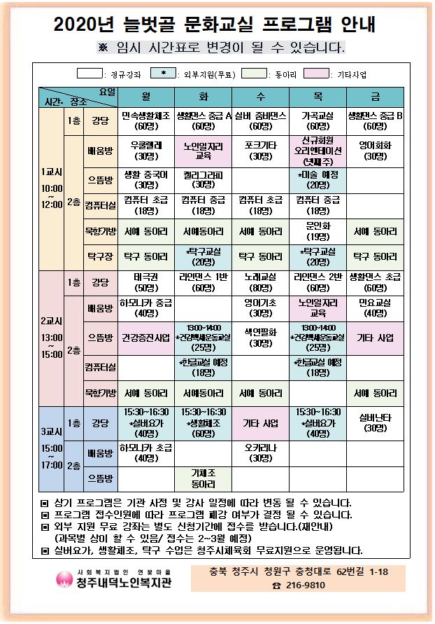 | 2020 늘벗골 문화교실 임시시간표(2차) | |||