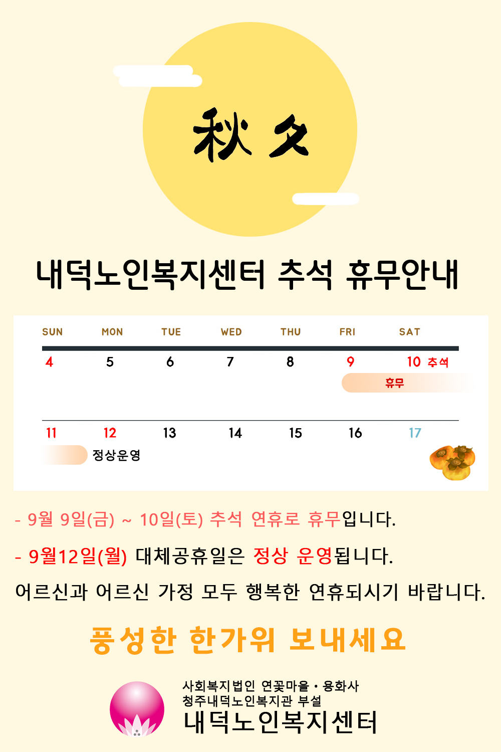 | 2022년 9월 추석 연휴 휴무 안내 | |||