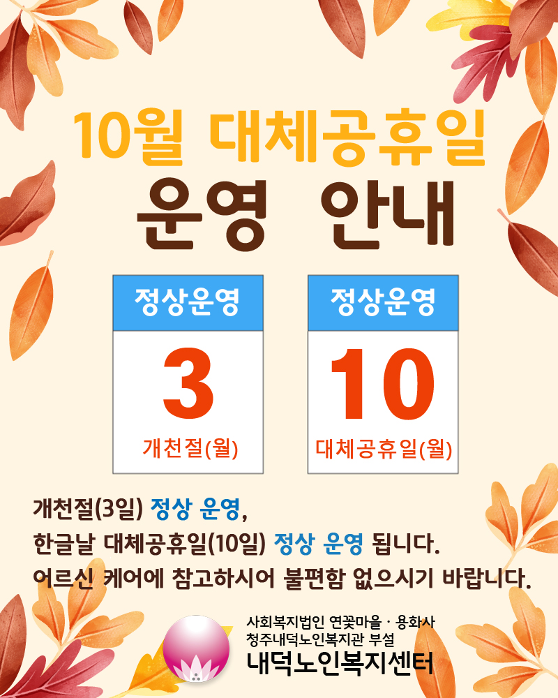 | 2022년 10월 대체공휴일 운영 안내 | |||