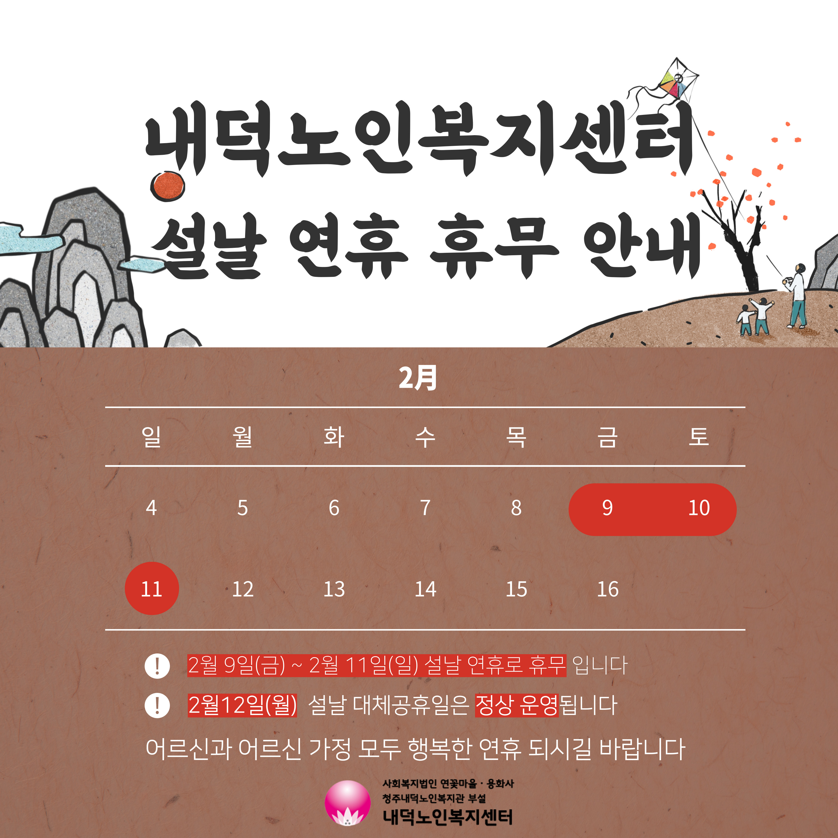내덕노인복지센터 > 공지사항 - 2024년 2월 설날 연휴 휴무 안내